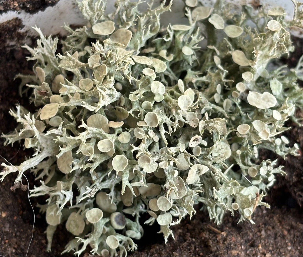 Апотеции вырастают до семи миллиметров диаметром, располагаются обычно на одном уровне.