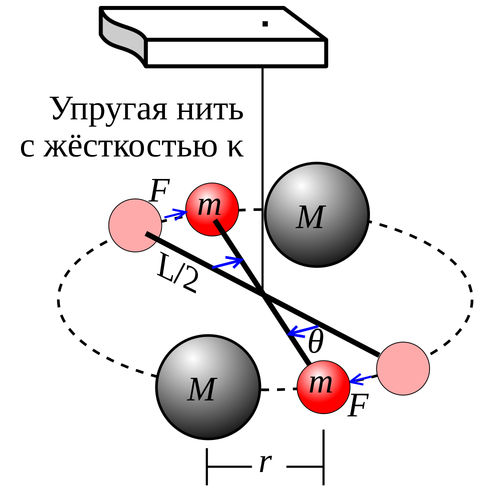 Рассмотрим опыт Кавендиша с крутильными весами. Для симуляции притяжения масс "учёным" приходится раскачивать или крутить эти массы. О простейшем повторении опыта Кавендиша с раскачиванием грузов можно прочитать здесь. Современные способы измерения гравитационной постоянной: "Для уменьшения погрешности исследователи повторяли опыты на нескольких установках с принципиально разной конструкцией и различными значениями параметров. На установках первого типа постоянная измерялась с помощью метода TOS (time-of-swing), в котором величина G определяется по частоте колебаний крутильных весов. Чтобы повысить точность, частота измеряется для двух различных конфигураций: в «ближней» конфигурации внешние массы находятся поблизости от равновесного положения весов (эта конфигурация представлена на рисунке), а в «дальней» — перпендикулярно равновесному положению. В результате частоты колебаний в «дальней» конфигурации оказывается немного меньше, чем в «ближней» конфигурации, и это позволяет уточнить