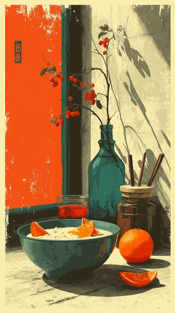 Вот вчера я пила кофе с молоком — и сегодня пила, а молоко всё ещё есть. Хотела сварить рисовую кашу с тыквой на молоке. Как десерт, горячую и сладкую. Не собралась, но идея ещё жива, как и половина бутылки молока. РИСОВАЯ КАША С ТЫКВОЙ И КОРИЦЕЙ Ингредиенты на порцию: Рис круглый отваренный (150 г), тыква запечённая (100 г), молоко 2.5% (100 мл), корица (2 г), мёд (15 г), тыквенные семечки (10 г), КБЖУ: 420 ккал / 10 Б / 8 Ж / 80 У Подписывайтесь #midjourney #rusolga #диетавкартинках