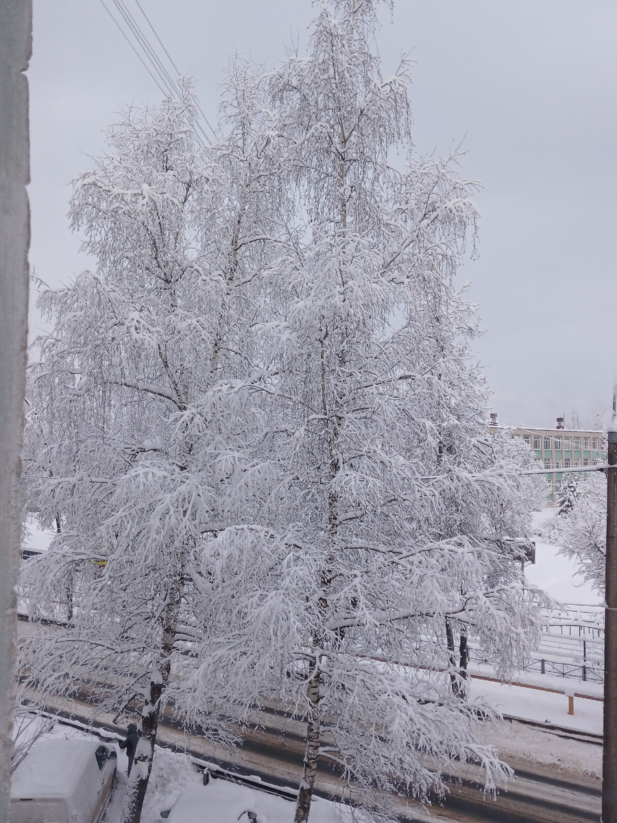 Всю ночь шел снег, а утром за окном обнаружилась вот такая красота...
