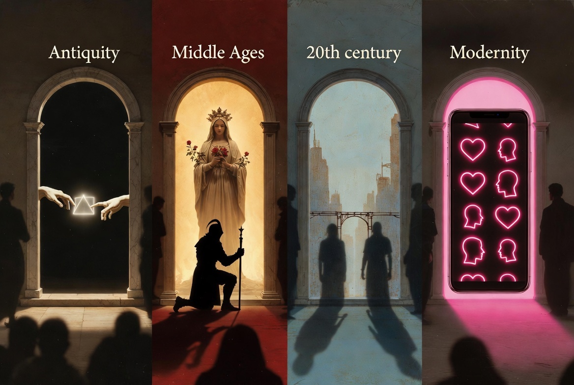 Что такое любовь? Парадоксально, но человечество так и не пришло к единому ответу. Более того — каждая эпоха давала свой, радикально отличный. Любовь была путём к Богу, рыцарским подвигом, экзистенциальным выбором, а сегодня всё чаще — элементом цифрового интерфейса.