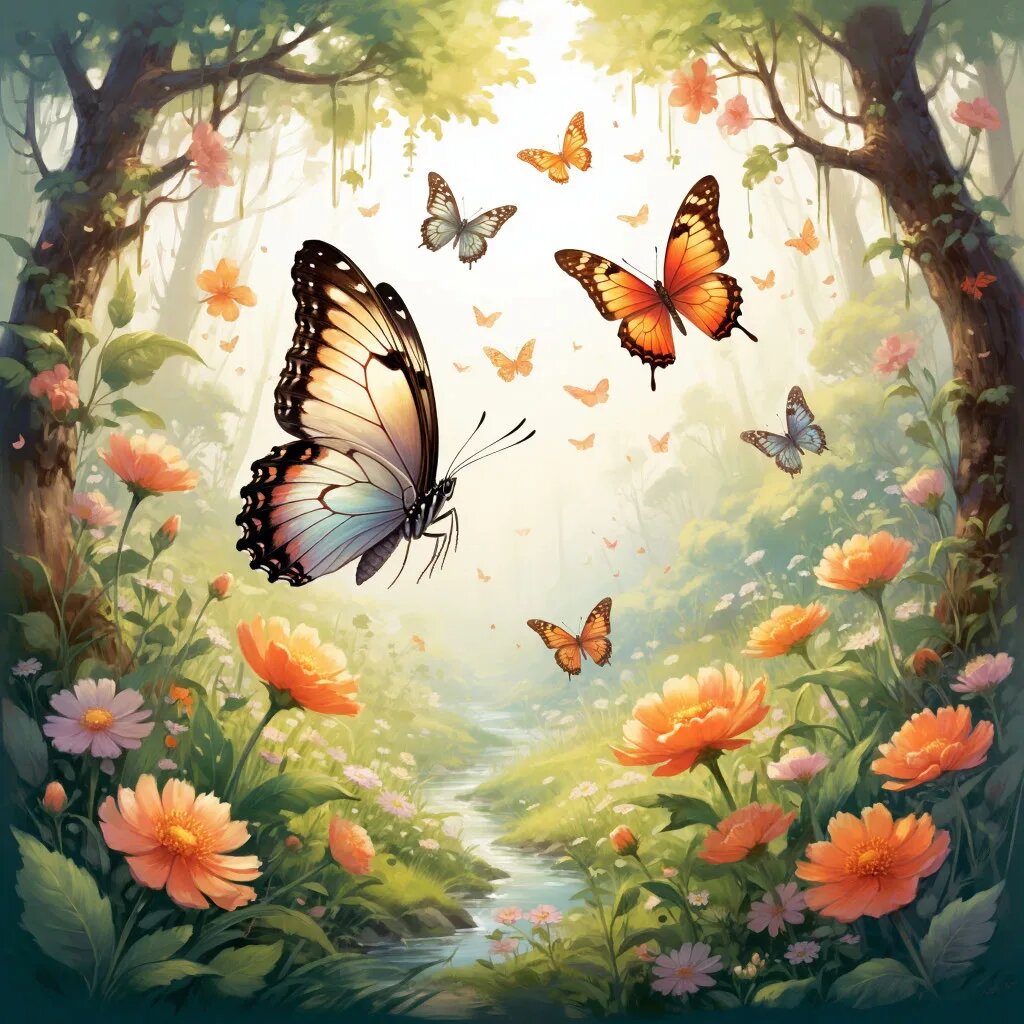 В далёкой долине, где цветы играли всеми оттенками радуги, жили крошечные бабочки‑феи. Каждая из них обладала своим особенным даром: одна могла зажигать светлячков, другая — вызывать радугу после дождя, третья — заставлять цветы распускаться в мгновение ока. Самой юной среди них была Ириска — бабочка с нежно‑голубыми крыльями, украшенными золотыми звёздочками. Она ещё не знала, в чём её особый дар, и очень переживала из‑за этого. Остальные бабочки уже вовсю помогали долине расцветать, а Ириска только порхала с цветка на цветок, не понимая, чем может быть полезна. Однажды в долину пришла беда: тёмная туча закрыла солнце, и все растения начали увядать. Цветы перестали петь свои утренние песни, а ручей затих, словно боялся шевельнуться. Бабочки‑феи пытались использовать свои дары, но ничего помогало — туча была слишком сильной. Ириска, глядя на унылую долину, почувствовала, как в её крылышках зарождается странное тепло. Она взлетела выше всех и начала кружиться, рассыпая с крыльев золотые