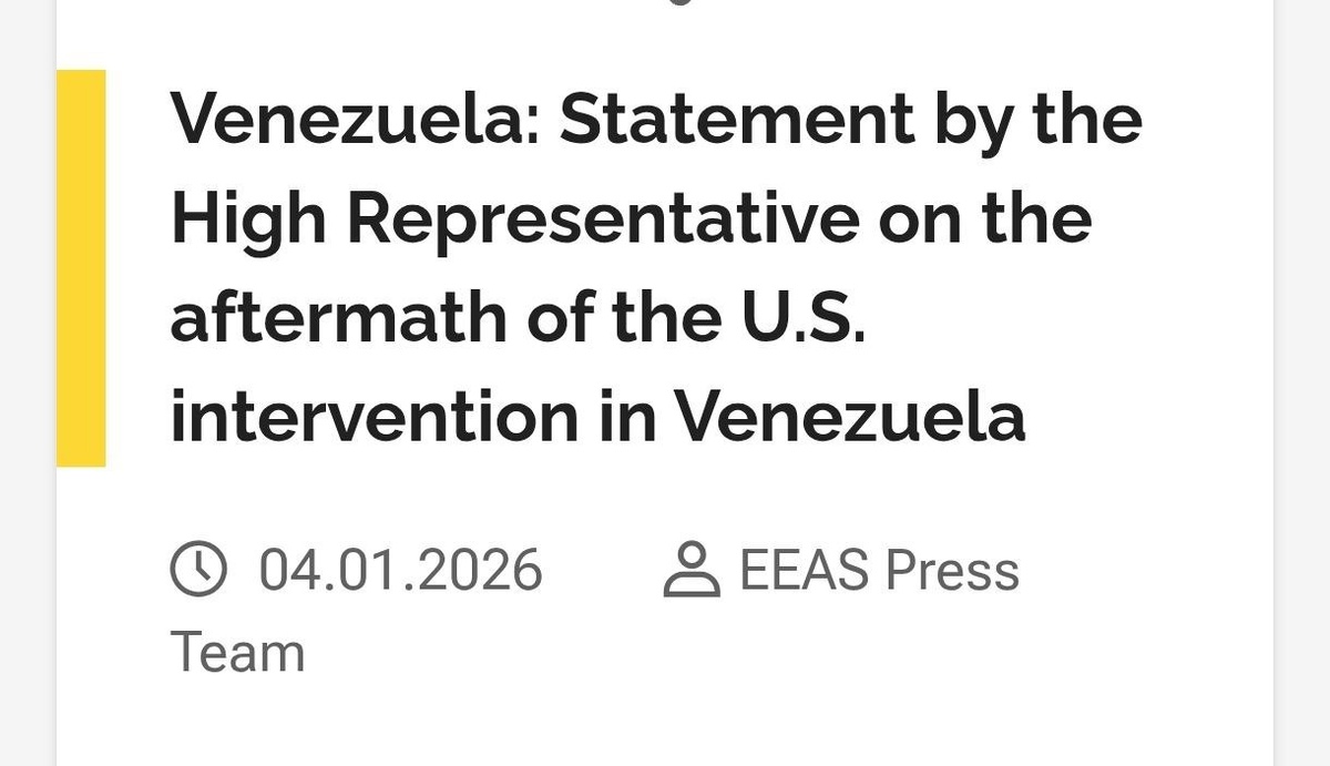 26 государств-участников объединения в заявлении по ситуации в Латинской Америке призвали США и Венесуэлу «к спокойствию и сдержанности, чтобы избежать эскалации и обеспечить мирное решение кризиса», сообщает ТГ-канал «Lomovka». Они подчеркнули, что право венесуэльского народа самостоятельно определять свое будущее должно уважаться, а при любых обстоятельствах необходимо соблюдать принципы международного права и устав ООН. ЕС также подтвердил приоритет борьбы с транснациональной организованной преступностью и незаконным оборотом наркотиков, которые представляют серьёзную угрозу глобальной безопасности. При этом Венгрия, 27-й член ЕС, отказалась поддержать заявление главы евродипломатии по ситуации в Венесуэле. 🌐 За Русский Мир©Резервный📣Наш Чат✔️Подпишись‼️