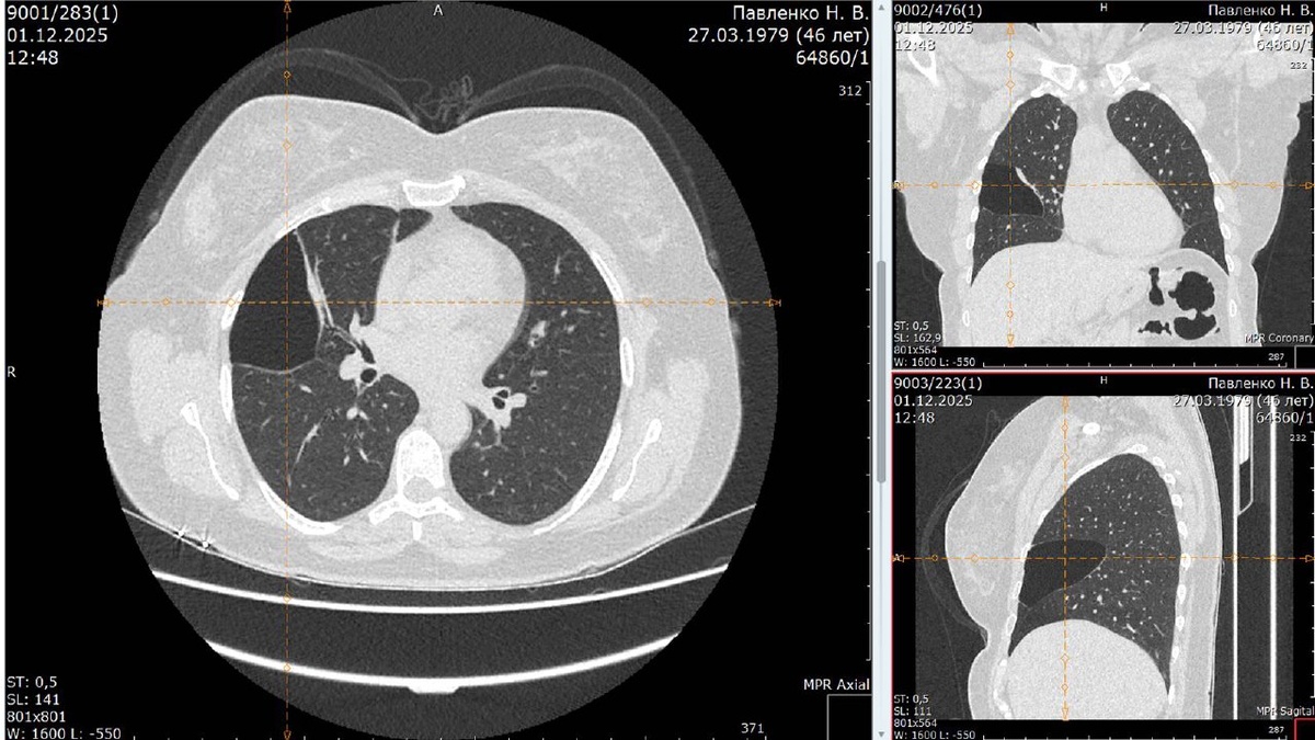 К нам обратилась пациентка П., 46 лет. На диспансеризации случайно нашли массивную буллу в средней доле правого лёгкого – полость с воздухом, которая почти полностью сдавливала долю и могла лопнуть в любой момент, вызвав спонтанный пневмоторакс (опасное для жизни состояние). Жалоб не было, но риск – высокий, поэтому выбрали хирургическое лечение. Что сделали: Вся операция – через проколы, без больших разрезов. В результате: Пациентка перенесла вмешательство без осложнений и выписана на 6-е сутки в удовлетворительном состоянии. Риск внезапного пневмоторакса устранён, объём лёгочной ткани сохранён по максимуму. Свяжитесь с торакальным хирургом для консультации с помощью контактов ниже: Пономарёв Сергей Эдуардович – хирург, врач-онколог +7 (916) 070-03-70 t.me/ponomaryov_sergei