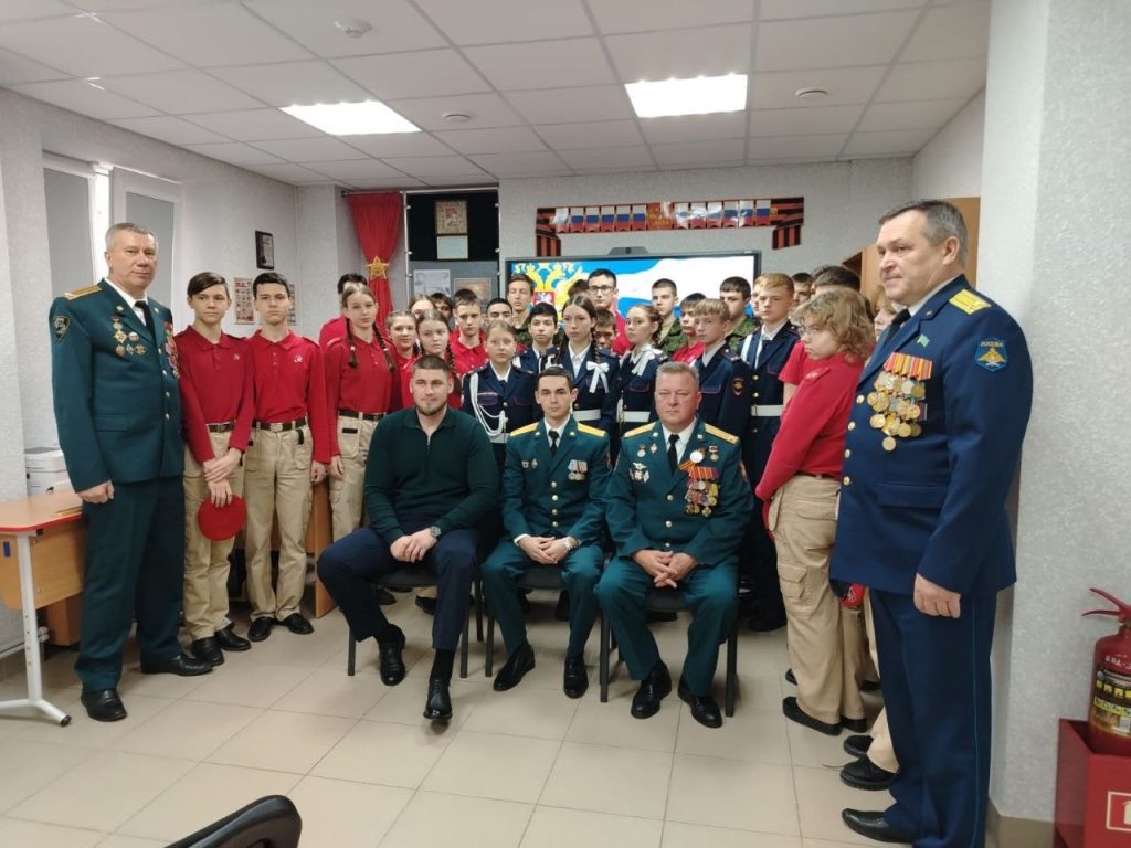 На нее пришли ребята девятых классов школ №2 и №15, торжественные и нарядные, в юнармейской форме, они готовились ко встрече с героем. Специально из Мариуполя на нее приехал участник СВО, награжденный боевыми и Правительственными наградами, помощник начальника отделения по военно-политической работе 50-й бригады, старший лейтенант Андрей Александрович Мельников. В 2021 году он окончил Саратовский военный Ордена Жукова Краснознаменный институт войск Национальной Гвардии Российской Федерации и проходил военную службу в 50-й отдельной бригаде, сначала в должности командира взвода, потом заместителя командира роты. Неоднократно бывал в командировках в зону боевых действий, имеет Правительственные награды, в том числе за ранение, полученное при выполнении специальных задач в районе Днепра, когда они вместе с бойцами 15 отряда выставляли заслон врагу. Тогда они попали под минометный обстрел, но сумели выстоять без происшествий и потерь. Андрей Александрович Мельников был ранен, а после восстановления вернулся к службе.