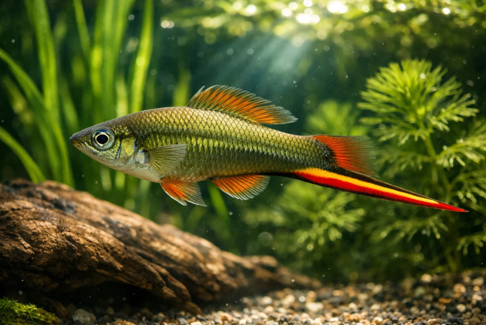 В мире аквариумистики, где яркие краски экзотических рыб давно стали привычным зрелищем, существует вид, сочетающий в себе элегантность дикой природы, выносливость и ту самую изюминку, которая приковывает взгляд. Это зелёный меченосец (Xiphophorus hellerii) — житель пресноводных водоёмов Центральной Америки, превратившийся в одного из самых узнаваемых и почитаемых обитателей домашних аквариумов. Его прозвище «меч» — не просто поэтическая метафора, а отсылка к уникальной анатомической особенности, которая стала его визитной карточкой и определила место в подводной иерархии.