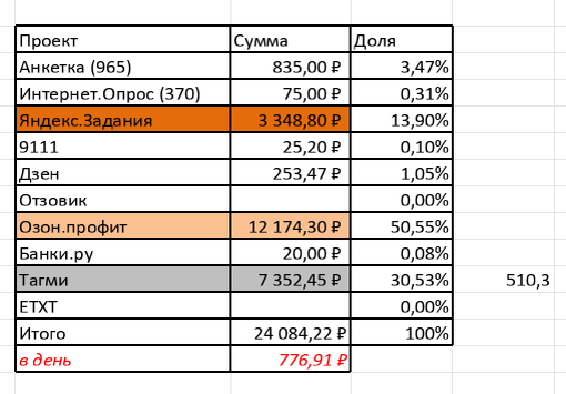 Практически весь год я сетовал на то, что мои дополнительные доходы в Интернете в 2025 году оставляют желать лучшего. Но декабрь (и отчасти ноябрь) изменили мою точку зрения. За декабрь мне удалось заработать аж24 084,22 рубля! Учитывая, что летом я часто делал менее 5 000 рублей в месяц, очень достойный результат. 1 место. Озон профит - 12 174,30 рублей. Самая удивительная для меня площадка. В первой половине декабре здесь я смог заработать 60 рублей. Но после пошли задания, связанные с разметкой карточек товаров на Озоне. 1 задания стоило по 2 рубля. Мне же они легко давались. Поэтому я выполнял их с огромным удовольствием. В один из дней смог сделать аж 1500 заданий, что принесло мне 3 тысячи рублей за 1 день (мой новый суточный рекорд по заработку в Интернете). 2. Тагми - 7 352,45 рублей (+510,3 рублей на модерации). На Тагми всё стабильно, теперь здесь мой месячный доход составляет не менее 7 тысяч рублей в месяц. Ещё 510 рублей находится на модерации, поэтому, скорее всего, резу