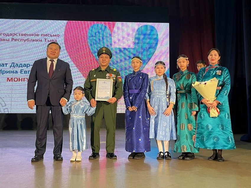 Многодетная семья Азиат и Ирина Монгуши получили медаль ордена «Родительская слава». Азиат служит в зоне СВО, а Ирина активно волонтерит. Семья воспитывает пятерых детей. Также медалью «За заслуги перед Отечеством» II степени награждена учёный и профессор Светлана Курбатская за вклад в развитие науки. Глава Тувы Владислав Ховалыг поздравил земляков с наградами и отметил, что их пример вдохновляет на добрые дела. Фото: Правительство Республики Тува 🤩Новости Сибири | Прислать новость 💜 Мы в MAX