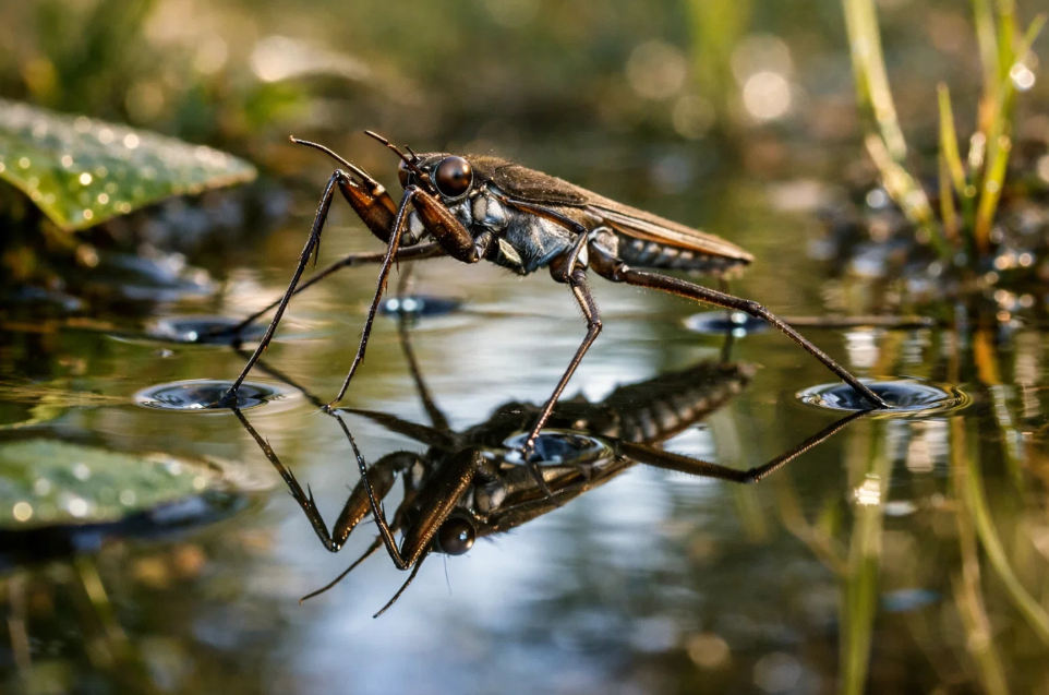 В мире насекомых, столь разнообразном и причудливом, есть виды, которые поражают не яркостью окраски или размерами, а невероятными физическими способностями, бросающими вызов нашим обыденным представлениям о природе. Среди них особое место занимает водомерка — существо, превратившее самую поверхность водоёма в твёрдую почву, среду обитания и источник пропитания. Это насекомое, кажущееся невесомым эльфом, скользящим по зеркальной глади, на деле является виртуозным хищником и живым воплощением сложнейших законов физики, биологии и эволюции. Знакомство с водомеркой — это погружение в мир, где сила поверхностного натяжения и адаптации к среде обитания достигают своего апогея.