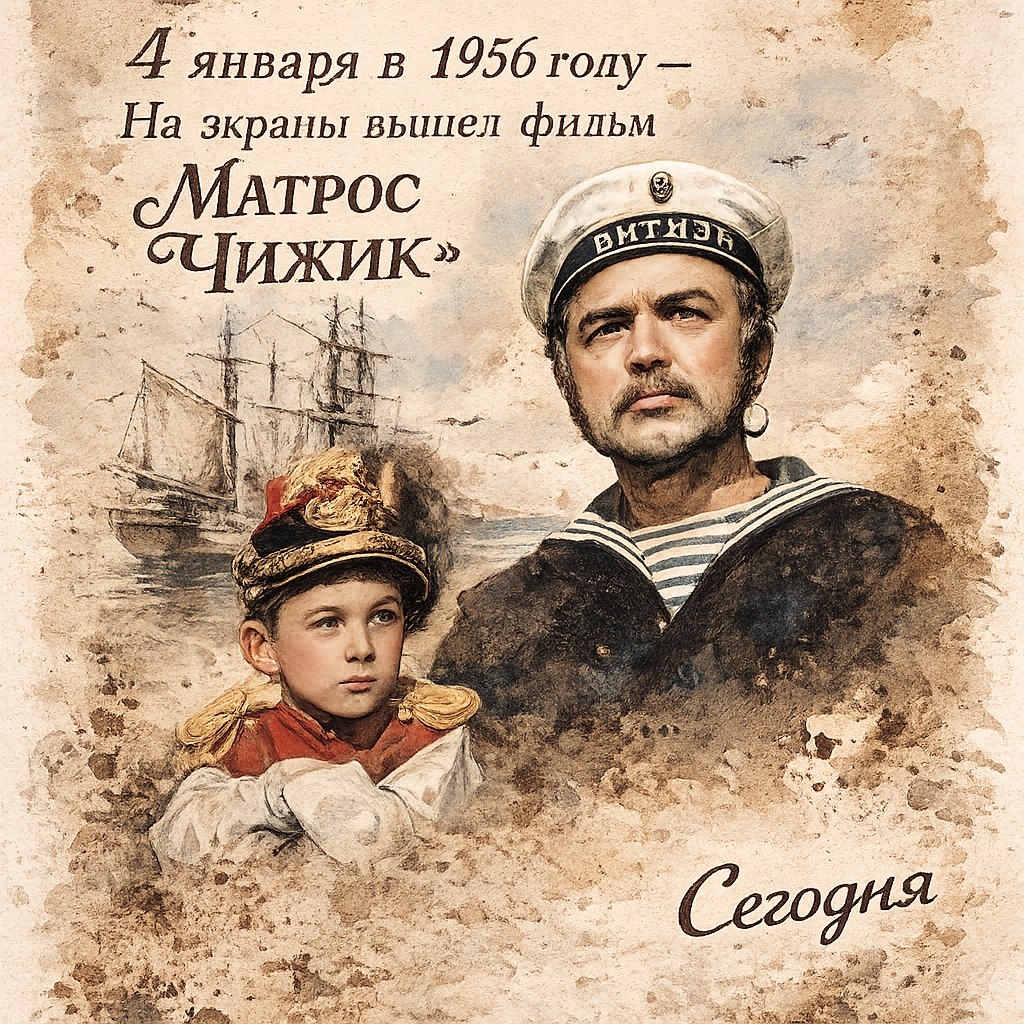 4 января 1956 года в советских кинотеатрах состоялась премьера драматического фильма «Матрос Чижик». Эта картина, снятая на Киевской киностудии, до сих пор остаётся ярким примером душевного кино о человечности, сострадании и силе доброго сердца. Фильм снят по мотивам рассказа Константина Станюковича «Нянька». В центре сюжета — матрос Федос Чижик (в исполнении Михаила Кузнецова), который после ранения во время учений становится денщиком в доме капитана Лузгина. Жизнь Чижика в новом доме непроста: супруга капитана, молодая и избалованная женщина, относится к нему с презрением, считая человеком третьего сорта. Единственной отдушиной для матроса становится общение с маленьким сыном Лузгиных — добрым и чутким мальчиком по имени Шура. Кульминацией истории становится момент, когда Чижик, не выдержав унижений хозяйки, решает бежать из дома. Однако его останавливает тяжёлое заболевание ребёнка — воспаление лёгких. Матрос остаётся, чтобы ухаживать за мальчиком, буквально вырывая его из лап смер