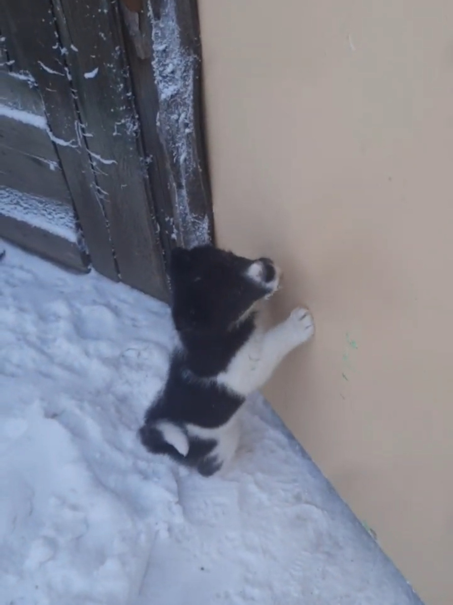 А ТУТ, ХОЛОДРЫГА НА УЛИЦЕ!!! -40!!! Он жив еще только потому что пушистик!!! И он просится, малышу холодно, голодно!!! Кто-то поставил мисочку, так 🤬🤬🤬 помешала она соседям, выкинули и щенка вышвыривают!!!