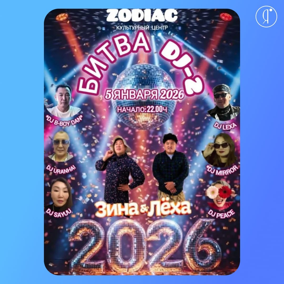#Вечером В этом празднике танца, музыки и эйфории вы насладитесь мастерством и талантом зажигательных конкурсантов-ДИДЖЕЕВ: DJ Uranhai DJ Lexa DJ B-boy Dan DJ Mirror DJ Peace DJ Sayuu Приглашенные гости: ❇️ ЗИНА & ЛЕХА ❇️ Брейкинг группа «Yo’kutzk» ❇️ Трайбл группы «ИМЭН» ❇️ певец Айхаллаан 5 января | 22:00 ZODIAC, Жорницкого, 22/2 1500 руб. Подробнее Online Якутия | Ждем вас в МАХ