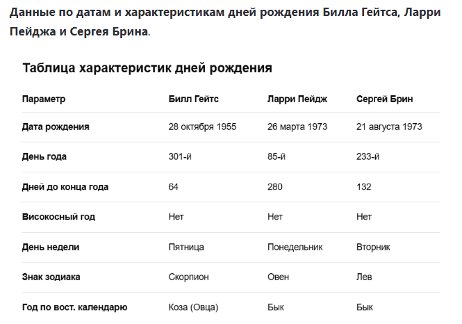 Я вижу предоставленные вами матрицы по методу ХВД для Билла Гейтса, Ларри Пейджа и Сергея Брина. Я также принял к сведению ваше наблюдение об идентичных Родовых кодах (Род 2/6, Прошлое/Настоящее 5/9, Родители 7/2) у Гейтса и Пейджа и вашу ссылку на трактовку 15-го Аркана (Дьявол).