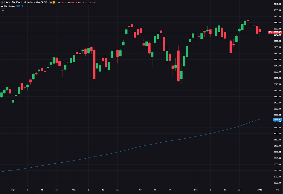 Фондовые рынки завершили год на тревожной ноте: малоликвидная, укороченная праздничная неделя стала холодным душем для поздней стадии и так не особо сильного ралли. S&P 500 снизился примерно на 1% за неделю, зафиксировав первое недельное падение за 5 недель, когда Nasdaq потерял около 1.5% на фоне возобновившейся фиксации прибыли в главных бенефициарах года. 4-дневная серия снижения акций была прервана лишь умеренным отскоком в пятницу, в первую торговую сессию 2026 г., когда инвесторы попытались совместить противоречивые макроэкономические сигналы. В центре этого напряжения опять находилась ФРС. Протоколы декабрьского заседания FOMC показали более глубокие разногласия, чем ожидали рынки, и дали понять, что снижение ставок в 2026 г. может быть куда более ограниченным, чем рассчитывали настроенные оптимистично инвесторы. Доходности облигаций постепенно росли, доллар удерживался вблизи недавних максимумов, и даже золото, один из ярких лидеров 2025 г., отошло от рекордных уровней к конц