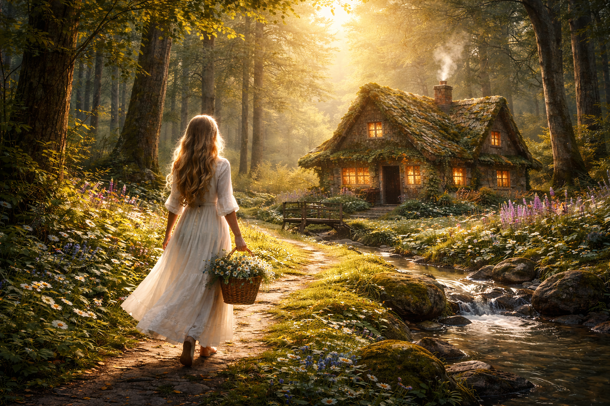 Навигатор привёл её на тихую улочку на окраине посёлка. Маленькие ухоженные домики утопали в осенней листве. Лесная сказка оказалась симпатичным двухэтажным коттеджем из тёмного дерева с большой верандой и участком, поросшим соснами.