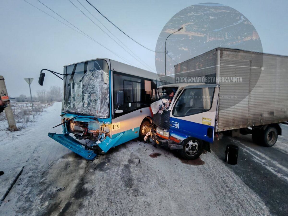 В чате «Дорожная обстановка Чита» пишут, что ДТП произошло на повороте на ГРЭС: у грузовика смяло кабину, у автобуса разворотило передний бампер и потрескалось лобовое стекло. Из-за аварии может быть затруднено движение — машины перекрыли большую часть дороги. UPD: По предварительным данным ГАИ, утром на 4-й Станкозаводской столкнулись «Лиаз» и Mitsubishi Canter. Одного из участников ДТП увезли в больницу. Видео и фото: тг-каналы «ЧП Чита» и «Дорожная обстановка Чита» 📌📌 Предложить новость