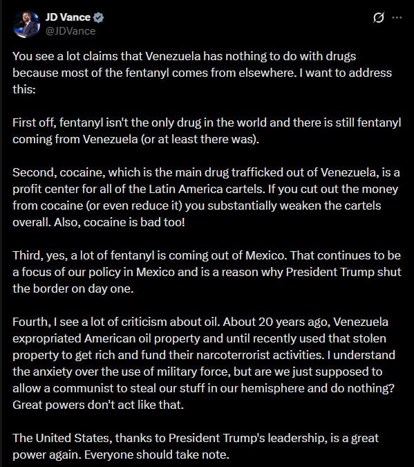 Vance breaks silence in what commenters call a strangely dispassionate defense of Venezuela takeover