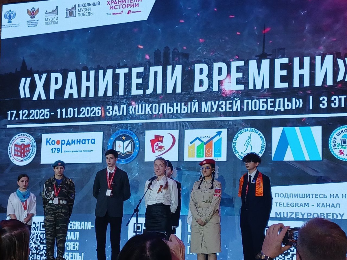 ✅В декабре в Музее Победы состоялось открытие выставки «Хранители времени». Это 80-я выставка Детского центра Музея Победы, посвящённая 80-летию Победы в Великой Отечественной войне. На экспозиции были представлены школьные музеи семи регионов России: Санкт-Петербурга, Свердловской области, Москвы, Республики Татарстан, Республики Коми, Новгородской области и Ханты-Мансийского автономного округа - победителей и финалистов Всероссийского конкурса школьных музеев «Память жива» и участников Всероссийской историко-просветительской программы «Школьный Музей Победы». 🏅Команда «Марфинец» ГБОУ Школа № 1494 заняла почётное 3 место в номинации «Экспозиция» Всероссийского конкурса школьных музеев «Память жива» с видео роликом об Алексее Михайловиче Заплетнюке - офицере-воспитателе кадетских классов, гвардии капитане, кавалере ордена Мужества, отдавшего свою жизнь, защищая Отечество на специальной военной операции. На выставке была представлена экспозиция «Отечеству на верность присягая» с информ