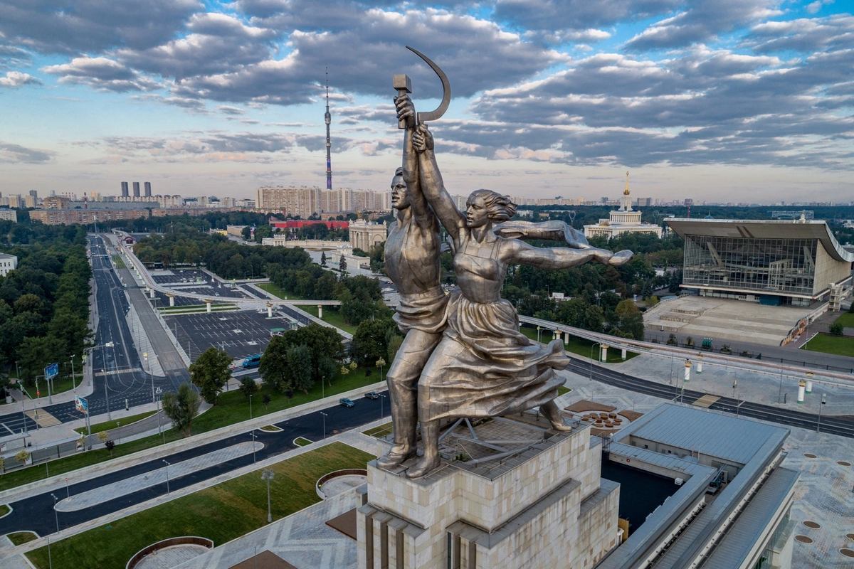 Созданная памятная композиция в Советском Союзе «Рабочий и Колхозница» популярна во всем мире. Символ коммунистической эпохи не сразу принял свой привычный вид. Монумент был задуман скульптором Верой Мухиной немного другого дизайна, но представители власти внесли свои корректировки. Это было сделано в целях требования к тому времени, когда нужно было показать всей мировой общественности стремление и мощь страны. Памятник был изготовлен специально для выставки, которая должна была пройти на территории Франции в Париже в 1937 году. Какой облик у него был изначально? Идея создания памятника принадлежала руководителю скульптурного отдела павильона Борису Иофану, который задумал увидеть на здании фигуру, являющуюся символом двух классов - рабочих и крестьян. В основе был парный образ (мужчины и женщины), который был заимствован из античности в лице энергичной и стремительной Ники и гармоничного вида борцов, боровшихся против тиранов. Лица героев древности были заменены на простых людей, кот