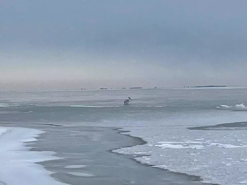 Вмерз в лед и погибал на холоде: в Таганроге спасли пеликана с поврежденным крылом