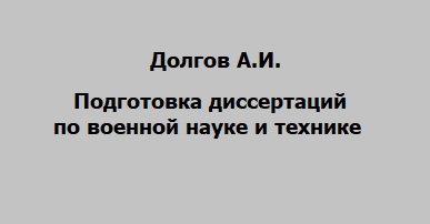 Книги Долгова А.И. по подготовке кандидатской и докторской диссертаций по военным и техническим наукам
