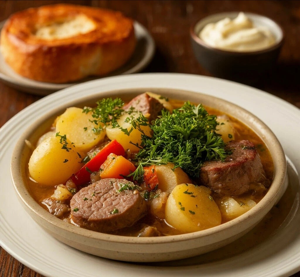 7. 🌿 Перед подачей посыпать обильно рубленой свежей петрушкой. Подавать прямо в кастрюле, с тёмным хлебом и ирландским маслом!