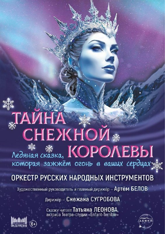 🗓️ 6, 8, 9 января в 11:00 📍Дворец творчества детей и молодёжи Представление по мотивам сказки Г.Х. Андерсена в исполнении оркестра русский народных инструментов. Сказка с холодным названием о маленькой хрупкой, но сильной духом девочке, босиком добравшейся до края света, чтобы вызволить из чертогов Снежной королевы своего названного брата. История о настоящей дружбе, верности и нежной любви. Повествование сказки будет сопровождаться красочными иллюстрациями на экране. Образная музыка и живое звучание оркестра передадут чувства героев каждому слушателю. Билеты на 6 января 🎟️ Билеты на 8 января 🎟️ Билеты на 9 января 🎟️ *Дети до трёх лет - бесплатно без отдельного места. #6января26@culturnik #8января26@culturnik #9января26@culturnik