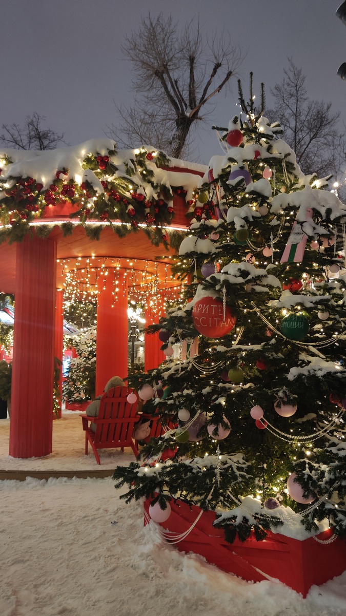 Подготовила для вас зимнее путешествие по самым красивым местам города. Если вы ещё не успели погулять по центру Москвы - сохраняйте эту подборку интересных и сказочных точек и скорее отправляйтесь на прогулку! Путешествие лучше начать с этой улицы от метро Смоленская, где вас встретят мандариновые ёлки и большой павильон Мандарин, а ещё множество других украшений. Проходим рядом с Кремлём и двигаемся в сторону Красной площади, мы вошли на нее со стороны Никольской, где был открыт вход. Внутри вы найдете множество брендированных ёлок, атмосферу счастливого детства и тепло, чтобы немного согреться и продолжить путь. На ярмарке придется немного потолкаться, пройти мимо катка ГУМа и затем выйти к главной ёлке страны - я с нетерпением жду, когда перестанут рубить вековые деревья ради того, чтобы пару недель ей любоваться и потом утилизировать. Тут можно встретить большого толстого снегиря, который мне очень понравился, съесть дорогущий трдельник, (что мы и сделали) и с новыми силами двигат