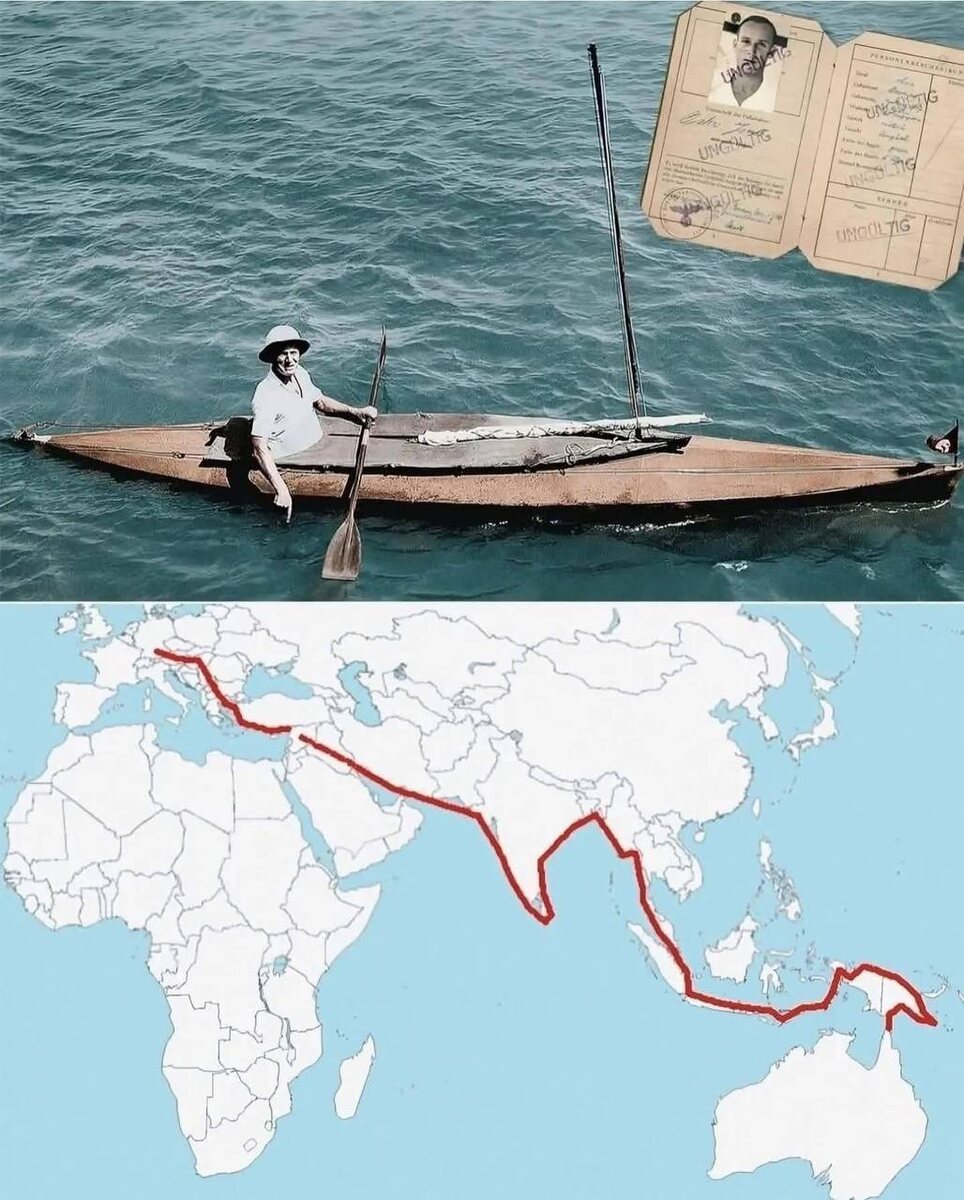 найти работу на медных рудниках. Но это простое путешествие превратилось в семилетнюю одиссею длиной более 50 000 километров. Шпек пересёк реки и моря Европы, Ближнего Востока, Индии и Юго-Восточной Азии, пережил малярию, штормы, ограбления и полное одиночество. Жители прибрежных деревень поражались, видя одинокого человека в складной лодке, гребущего из конца в конец света - питающегося кокосами, сардинами и чистым упрямством. В 1939 году он наконец достиг берегов Австралии - измотанный, но победивший. Только вот триумфа не случилось: началась Вторая мировая война, и австралийские власти арестовали его как гражданина Германии. Следующие семь лет он провёл в лагерях для интернированных, выйдя на свободу лишь в 1946-м. Возвращаться в Германию Шпек не стал. Он обосновался в австралийском городке Лайтнинг-Ридж, где добывал опалы и жил тихо, без славы и шумных интервью. Когда его спрашивали о путешествии, он лишь говорил: «Я доволен. Я знаю, что сделал». Оскар Шпек умер в 1993 году, в