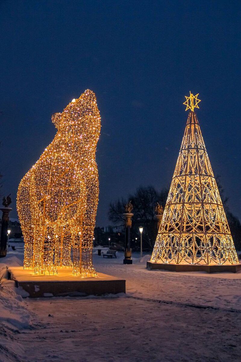 Мишки и елка у входа в парк Тысячелетия