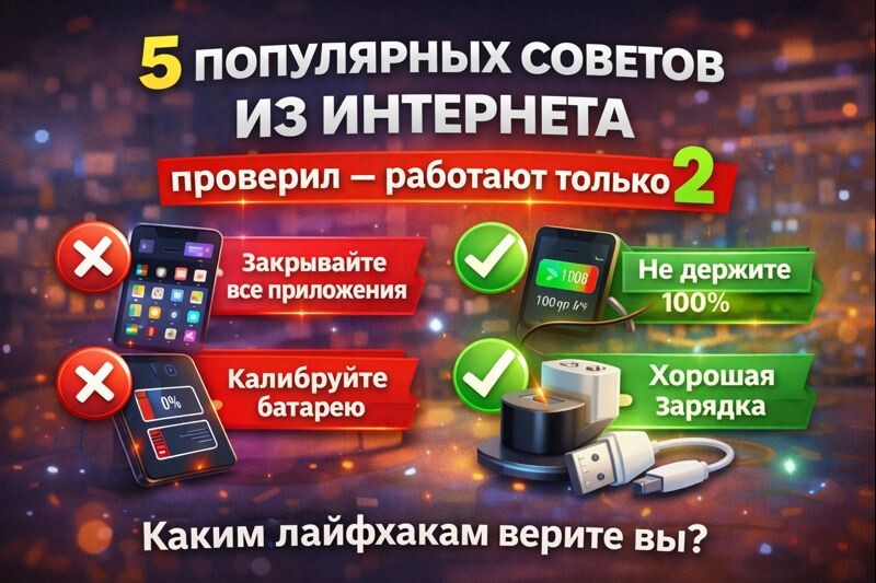 Частые полные разряды, наоборот, ускоряют износ. 📌 Вердикт: устаревший миф