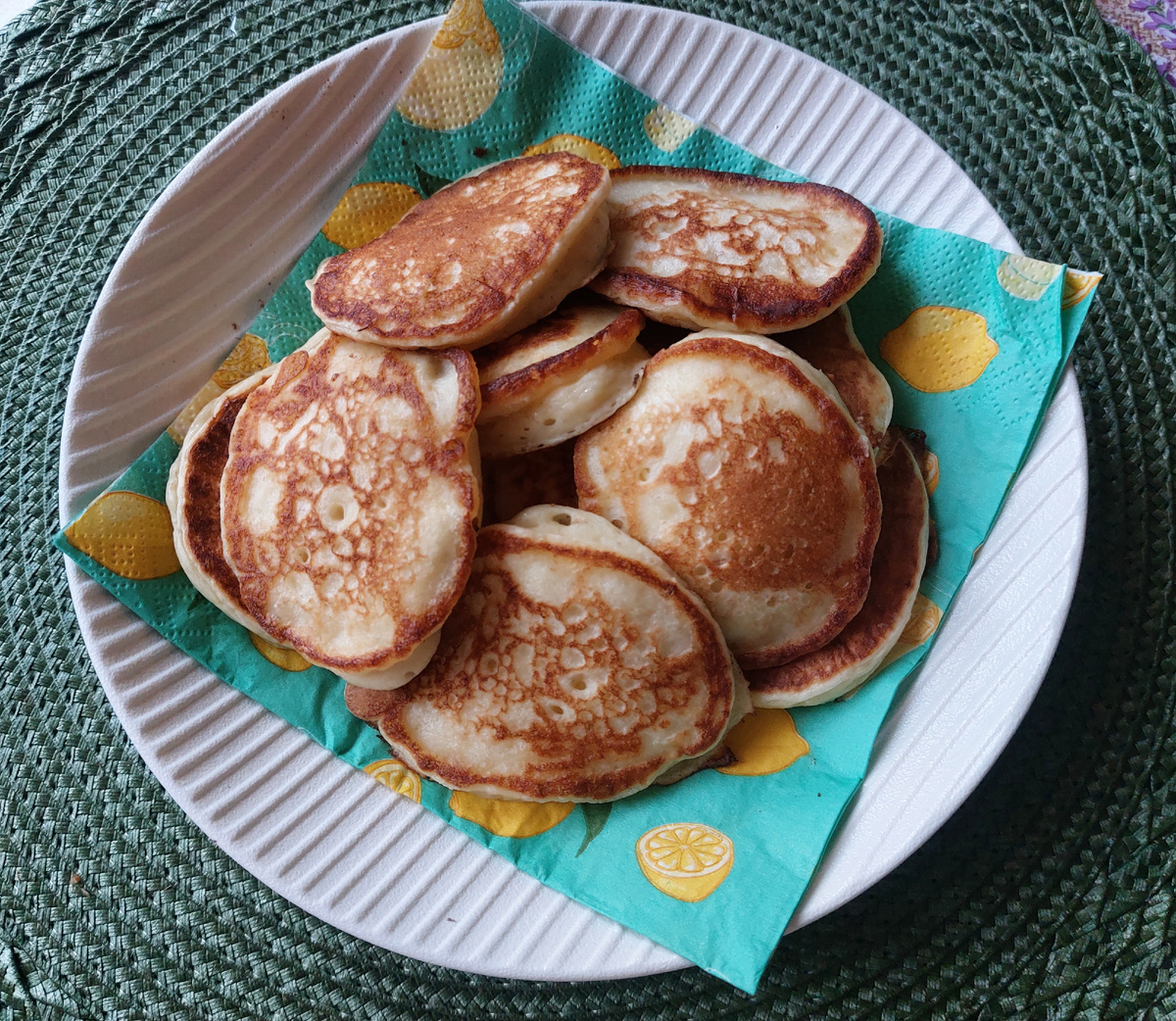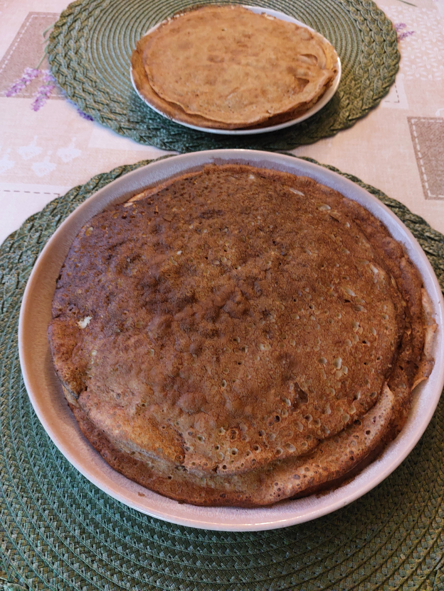 Бывают дни, когда просыпаешься без настроения, и всё не так. А бывает всё наоборот. 4-5 января. Поднялась в 7.00. За окном еще темно, а бабушке Тане не спится. В доме гости: два внука и внучка и их мамы с папами. Тут уж не до сна. Надо придумать, чем их накормить. Добрый день, гости и друзья канала. Мы с мужем два сельских пенсионера. Живем на самом юге Ростовской области. А сын и дочь со своими семьями живут в разных городах: в Краснодаре (дочь) и в Ростове-на-Дону (сын). И всегда на праздники приезжают в родительский дом — место, где они встречаются друг с другом, и внуки имеют возможность также общаться между собой. Так было и на эти новогодние праздники. Сегодня будет блинный день. Будем блинчиками баловаться с медом и сметаной. Но сначала напеку, пока все еще спят. Вчера готовила оладушки. Здесь порция внука. А сегодня меняю оладьи на блины. Как только проснулась, сразу выпила стакан теплой воды небольшими глотками. Советуют именно так, а не всю воду и залпом, чтобы разбудить орг