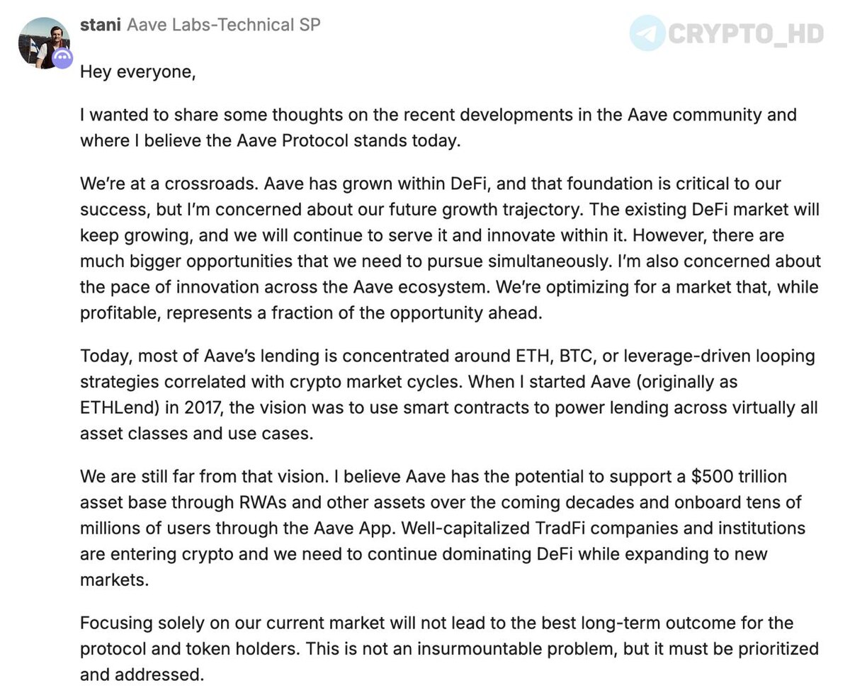🤑 В Aave Labs планируют делиться доходами с держателями AAVE. Основатель проекта рассказал о будущем Aave: ⊹ Протокол перерос рамки классического DeFi и упирается в потолок текущего рынка. ⊹ Следующий этап роста – выход за пределы крипто-кредитования и работа с RWA и TradFi. ⊹ Aave V4 станет базой для этого расширения: модульная архитектура и изоляция рисков. ⊹ Массовые продукты будут строить независимые команды, а не DAO. ⊹ Доходы, генерируемые вне протокола, Aave Labs планирует частично распределять в пользу держателей AAVE. Crypto Headlines
