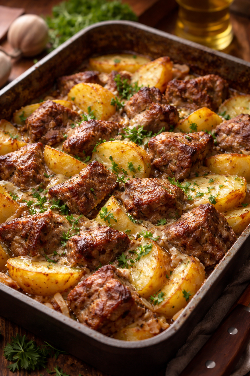 Картошка мягкая, жир впитался, мясо разваливается.
