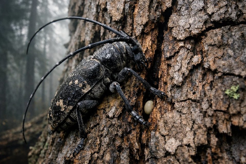 В этой фазе поведение жуков меняется кардинально. Они начинают атаковать не только явно ослабленные, но и внешне здоровые, жизнеспособные деревья. Это происходит по принципу «перемены хозяйки» — когда численность вредителя так высока, что для откладки яиц подходит практически любое дерево, ведь совокупный урон от тысяч личинок способен подавить даже сильные защитные механизмы здорового растения. Таким образом, жук-дровосек из потребителя мертвой древесины превращается в активного убийцу живых деревьев. Он становится первичным вредителем, что в корне меняет его экологическую роль.