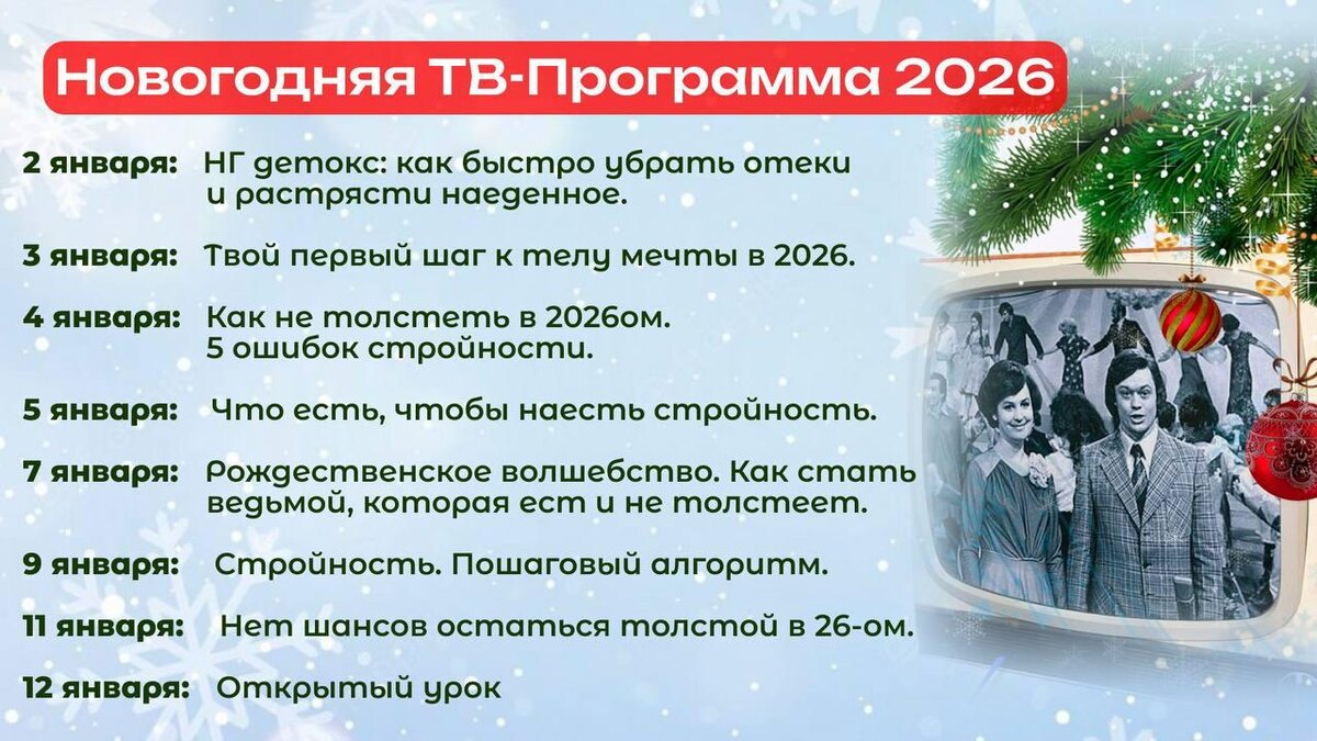 Телеканал Антифитнес продолжает работать для вас в праздничные дни.