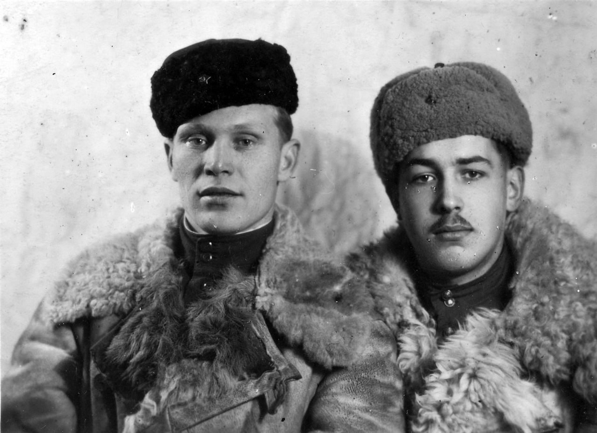 Офицеры Красной (Советской) армии в тулупах и шапках-ушанках
