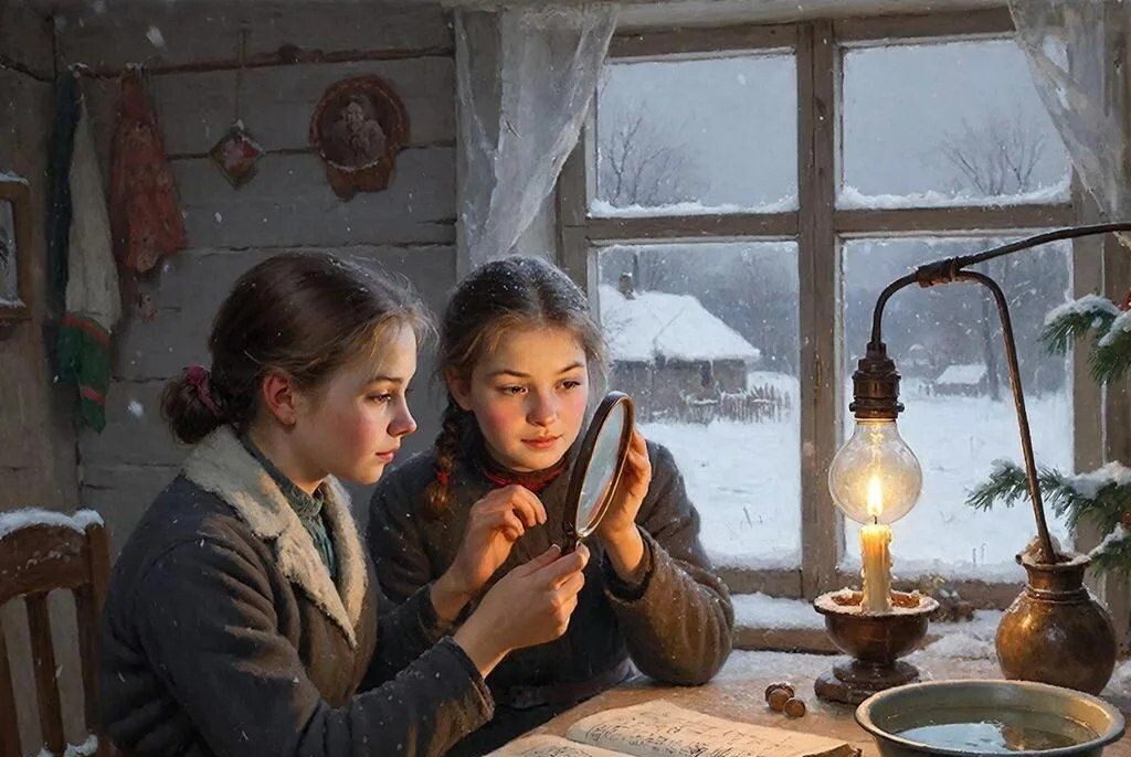 Арина помнила. Год назад, в такое же Рождество они с сестрой гадали на суженого. Они ничего не увидели, как не вглядывались в зеркало, хотя Галя говорила, что вроде ей какой-то силуэт почудился. Хорошо, что матушка этого не видела, а то схлопотали бы по первое число за это мракобесие, как называла Дарья эти гадания.