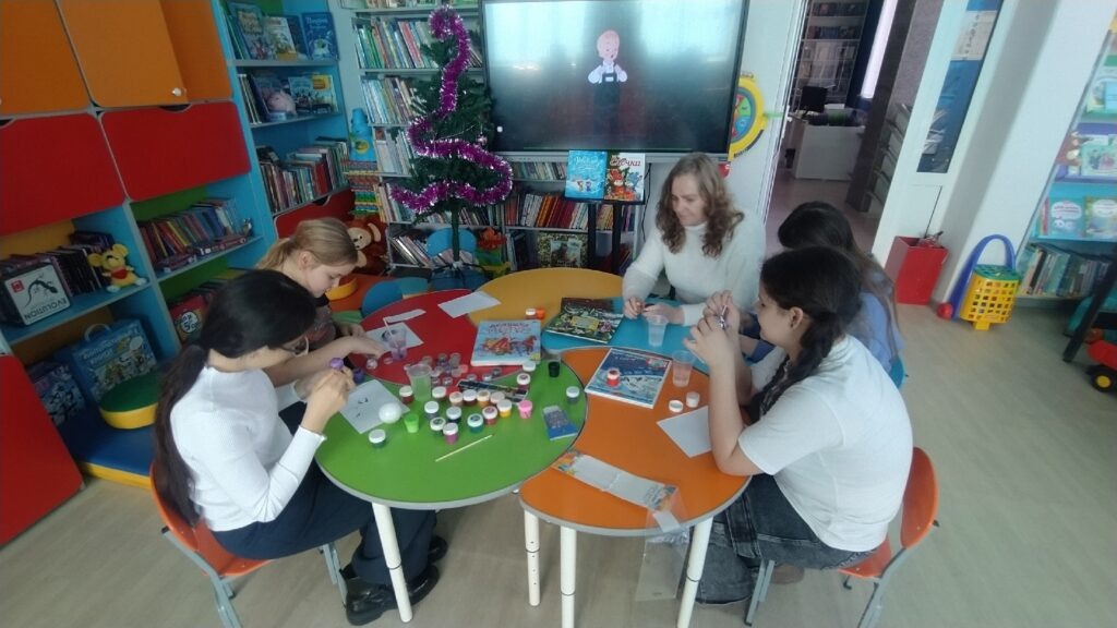 В первый рабочий день нового года в отделе обслуживания детей МЦБ им. И. Бондаренко для юных читателей литературно-творческого объединения «БиблиоТеатрум» состоялась творческая мастерская по росписи ёлочных шаров.