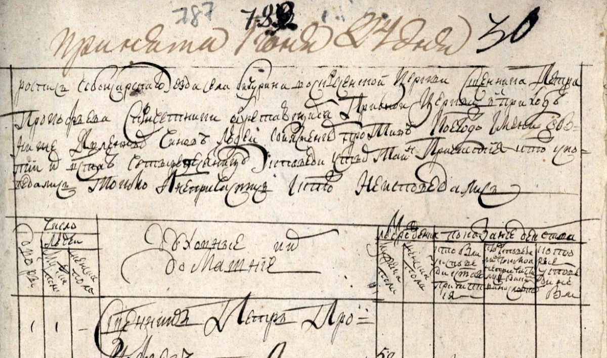 ГИА Чувашской Республики (ГИА ЧР), фонд № 225, опись № 7, дело № 32, стр. 1508 скан. Принята июня 24 дня. Роспись Чебоксарского уезда села Бичурина Воскресенской церкви священника Петра Прокофьева с причетники обретающимися при оной церкви в приходе ниже явленных чинов людей со изьявлением против коегождо имени о бытии их в Святую Четыредесятницу у исповеди и Святых таин причастия, и кто ж исповедовался токмо а не причастился, и кто не исповедался. Духовные и их домашние. 3. Дьячек Андрей Михайлов. 27 лет. Жена ево Наталья Борисова. 27. Дети их: Михаил. 2. Гаврил. 1. 4 . Пономарь Яков Борисов. 41. Жена ево Агрипина Прокофьева. 38. Дети их: Евграф. 14. Петр. 11. Ефим. 9. Николай. 3. У него мать Катерина Семенова. 60. https://yandex.ru/archive/catalog/33db6815-2f1d-48c7-902e-4501443af693/1509