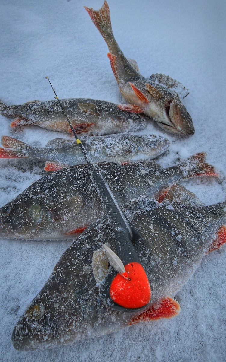 Активность рыбы высокая. Главное - попасть на свальчик и там, где еще не ловили. Но... Сумка уже полная, ловлю и отпускаю сразу. Это, конечно, убивает лунку. Сегодня не сильный мороз, а потому можно вынуть пяток, а потом отпустить разом.
