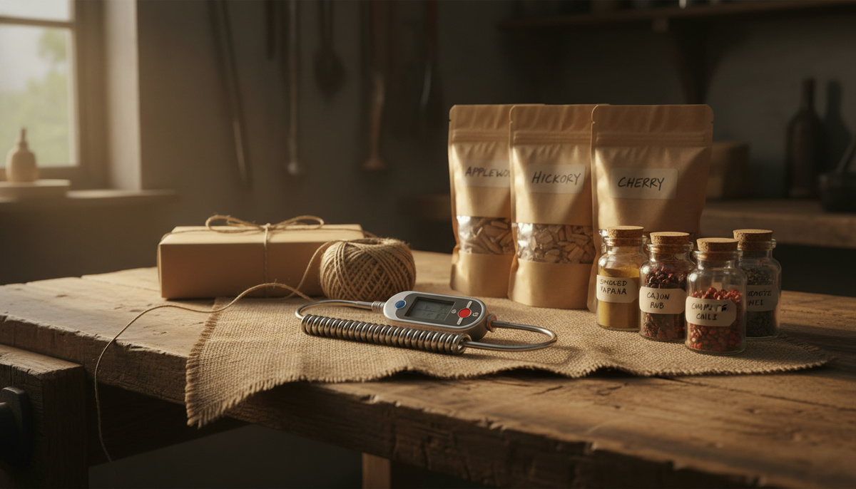 Чтобы подарок не ушёл «в ящик», выбирайте не «что подороже», а что решает задачу: контроль температуры, нормальная щепа, свежие специи и порядок в хранении. Это то, что работает каждый раз — и делает результат стабильным.