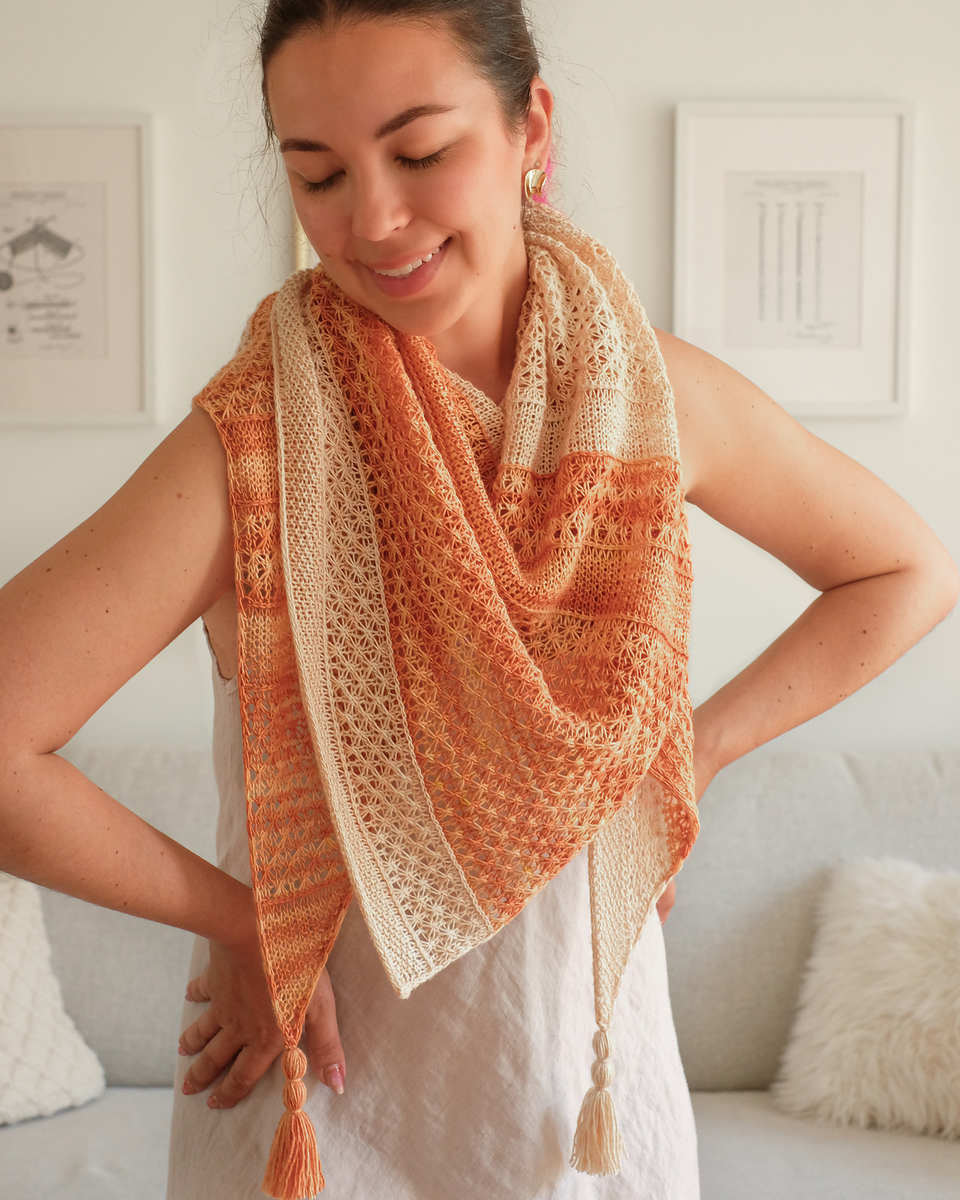 Есть шали которые просто греют. А есть такие которые цепляют взгляд и не отпускают. Работы Ксении Найдион(Ksenia Naidyon) как раз из второй категории. Их не пролистывают на автомате. На них останавливаются. Приближают экран. Разглядывают детали. И в какой то момент ловят себя на мысли, что руки уже тянутся к пряже. В мире вязания шалей сложно придумать что-то принципиально новое. Формы известны. Приемы знакомы. Но Ксения Найдион умудряется работать с классикой так, что она звучит свежо. Без кричащих эффектов. Без показной сложности. Спокойно и уверенно. Если вы хоть раз видели несколько ее работ подряд, появляется ощущение цельности. Не одинаковости, а именно авторского почерка. У Ксении Найдион нет случайных элементов. Каждый узор логично вытекает из предыдущего. Каждая линия поддерживает форму. Она любит ритм. Любит когда узор дышит. Где то дает паузу. Где то усложняет. И за счет этого шаль не выглядит перегруженной даже если схема кажется насыщенной. Это важный момент для тех, кт