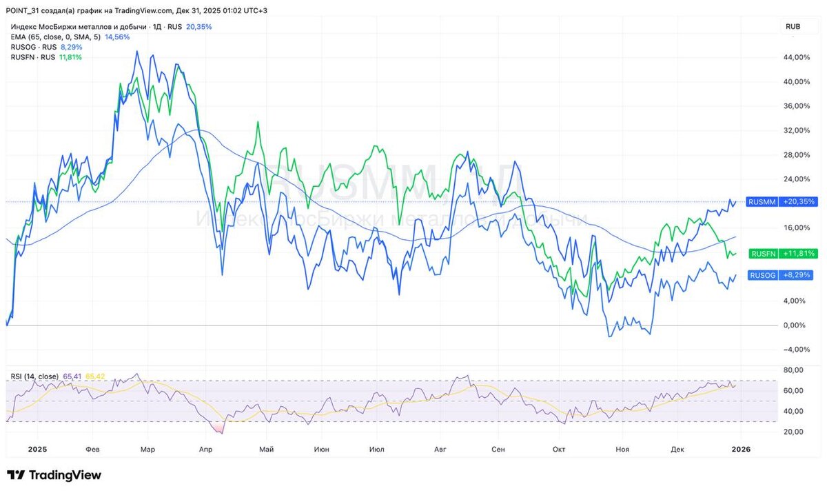 Друзья, рад приветствовать вас на страницах моего блога в новом году! По традиции на этой короткой праздничной неделе я опубликую серию статей, в которых мы подведем итоги 2025 года в разрезе секторов и отраслей. Итак, индекс Мосбиржи за 2025 год потерял 4%. Геополитическая неопределенность и все еще жесткая денежно-кредитная политика ЦБ не позволяют рынку уверенно развернуться. Индекс полной доходности «нетто» (MCFTRR) показал скромную динамику в 1,9%, а вот мой флагманский портфель значительно опередил индексы и вырос на 10,7% благодаря грамотно подобранным активам с фундаментально обоснованной ценностью и диверсификации по инструментам. Далее пройдемся по отраслям. Сектор в 2025 году повторил динамику 2024-го, снизившись на 12,3%. Причем цифры довольно сдержанные, учитывая весь негатив, обрушившийся на отрасль. Я уже не говорю про рекордный спред нашей марки Urals. Меня больше интересует, как будут вести себя спотовая цена на нефть и курс рубля в 2026 году. Даже легкая девальвация с