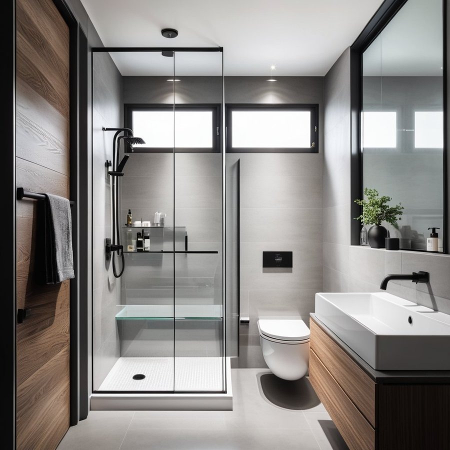 Для маленькой ванной идеально подойдут угловые умывальники, которые экономят пространство и могут быть установлены в труднодоступных местах. Выбирайте модели с встроенными полками или ящиками для хранения принадлежностей. Душевые кабины с раздвижными дверцами занимают меньше места по сравнению с ваннами, а модели с низким поддоном визуально расширяют пространство. Обратите внимание на стеклянные перегородки - они создают иллюзию простора и не загромождают интерьер.