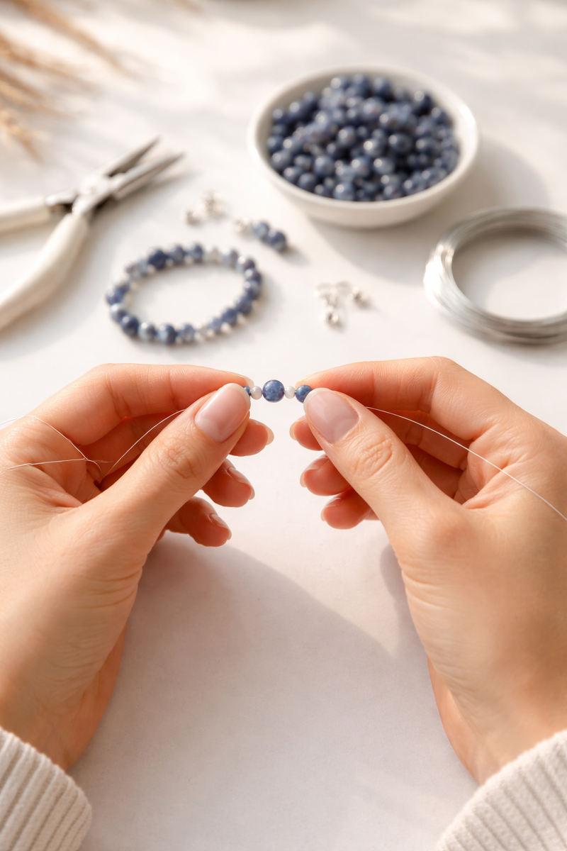 Есть украшения «на выход», а есть те, которые становятся частью тебя. Их надевают не ради случая, а ради ощущения. Содалит — именно такой камень. Современный, глубокий, немного дерзкий и при этом удивительно спокойный. Если бы камни умели быть стилем жизни, содалит был бы тем самым идеальным денимом: подходит почти ко всему и всегда выглядит уместно. Содалит — камень насыщенного синего цвета с белыми, молочными или дымчатыми прожилками. Его оттенки напоминают вечернее небо, асфальт после дождя, индиго, тёмный деним. Он не глянцевый и не «сказочный» — он честный, живой - настоящий! В украшениях содалит выглядит очень по-современному. Его часто выбирают те, кто ценит минимализм, эстетику повседневности и стиль без перегруза. Мы живём быстро, думаем много, переключаемся постоянно. Содалит же, словно пауза между задачами. Он не замедляет жизнь, нет, но может сделать её более осознанной, чтобы успеть за всем Его особенно любят: Содалит — не про эмоции «через край», а про спокойную глубину.