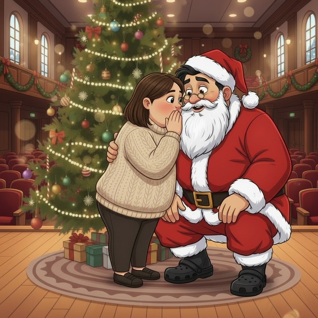 Я изо всех сил старался не разрушать им сказку, но всё вокруг было таким тёплым, смешным и по‑детски искренним, что улыбка сама пробивалась сквозь попытки сдержать тихий, добрый смех. Стою за кулисами актового зала. Снегурочка у ёлочки вместе со всеми ребятами и девчатами зовут Дедушку Мороза всё громче и дружнее, будто заклинание для чуда. А я там, в полутьме, волнительно жду своего момента, нарочно томя их ожиданием. И каждый новый возглас разносится по залу, как светлый колокольчик. И вот — мой выход. Ребята ликуют, машут руками, улыбаются шире некуда. А моя роль простая и светлая — быть для них частью праздника, добрым антуражем для Снегурочки и всех собравшихся. Она — главная волшебница дня, а я только киваю, улыбаюсь, махаю рукой да раздаю подарки, которые подаёт мне наш весёлый «эльф» — кладовщица Юлия Михайловна. Вот стоит передо мной сорокалетняя Леночка и рассказывает стишок про снежинки. Потом прижимается ко мне, когда её фотографируют, и шёпотом просит о чуде. Голос её почт