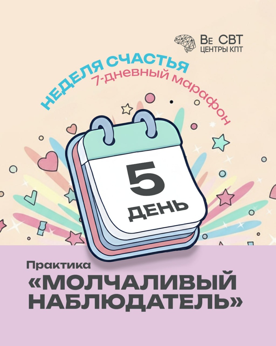 » Иногда мы забываем, что мы – это не наши мысли. Способность занять позицию наблюдателя дает возможность управлять своими эмоциями и принимать более взвешенные решения. Время выполнения: 5-7 минут 🔵Сядьте удобно, закройте глаза. 🔵Наблюдайте за тем, как возникают мысли, не цепляясь за них. Представьте, что это облака, проплывающие по небу, или радио, которое работает само по себе. 🔵Когда появляется мысль, мысленно говорите: «Это просто мысль», и возвращайтесь к наблюдению. Если отвлекаетесь — мягко возвращайтесь к исходной позиции, не виня себя. В первое время это нормально, и при регулярной практике внимание перестанет «скакать», станет более устойчивым. ✅Как это работает: В процессе уменьшается активность областей мозга, связанных с тревожностью и навязчивыми мыслями. Напишите в комментариях "+", когда сделаете!