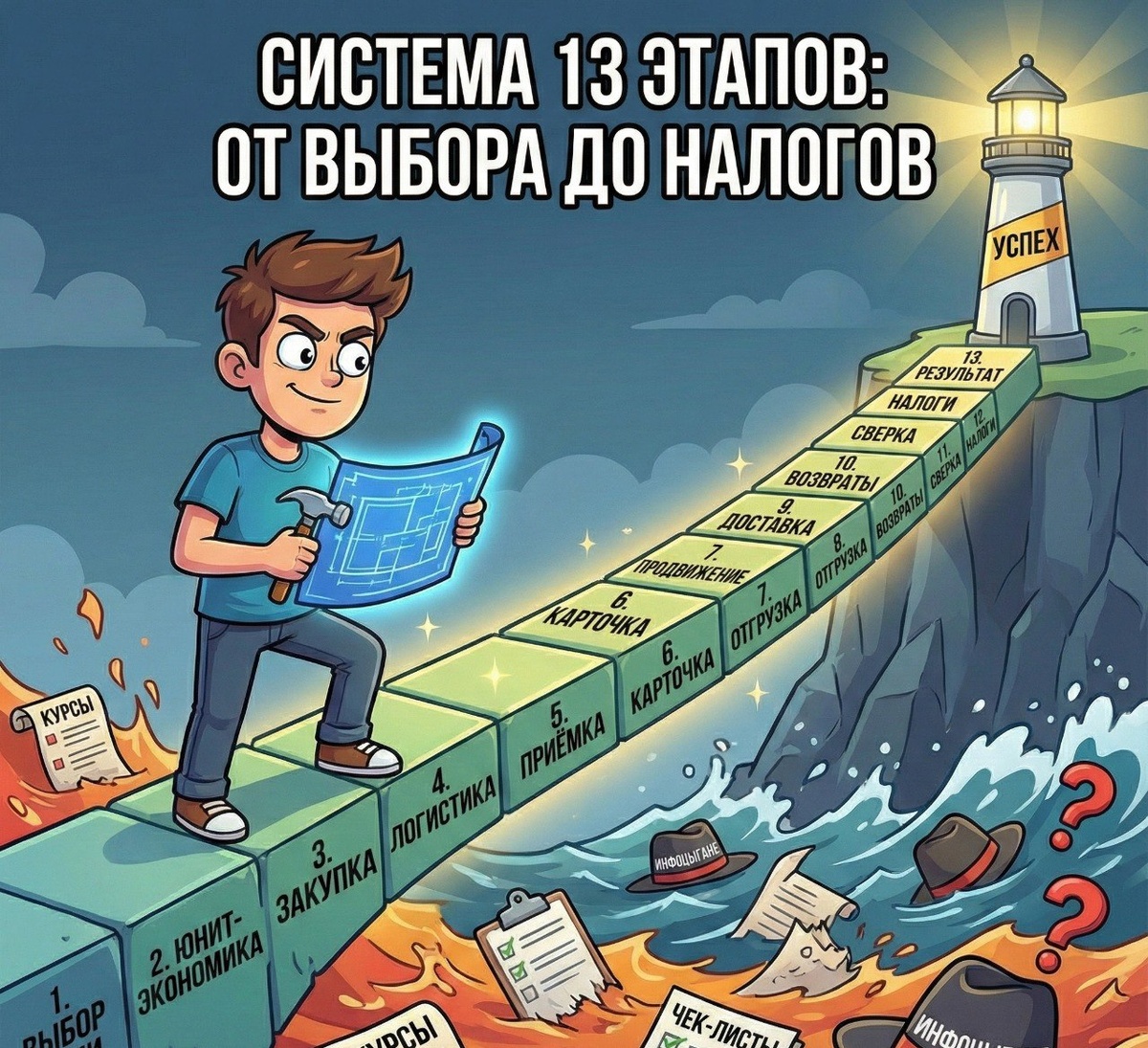 Честно — надоело. Надоело писать про выбор ниш, проверку экономики, юнит-экономику. Темы заезженные. Инфоцыгане уже всё разжевали, продали курсами, запаковали в чек-листы. Казалось бы, про это уже всё сказано. Но вот приходят люди на консультации. И запросы — как под копирку: — «Помоги выбрать товар» — «Посчитай экономику» — «Не понимаю, где ошибка» — «Закупил, а не продаётся» — «Почему у меня минус, а у конкурента плюс?» И это не новички. Это люди, которые уже в рынке. Которые читали статьи, смотрели курсы, считали на калькуляторах. Но всё равно проёбываются. — Почему? Потому что между «знать» и «понимать» — пропасть. Можно знать формулы и не понимать, когда их применять. Можно знать про юнит-экономику и всё равно входить в убыточные ниши. Можно знать про стресс-тесты и не делать их, потому что «и так понятно». А потом приходят с проблемами. И оказывается, что проблема не в инструментах. Проблема в мышлении. — Поэтому решил написать цикл статей. Не очередной гайд «как заработать на ма