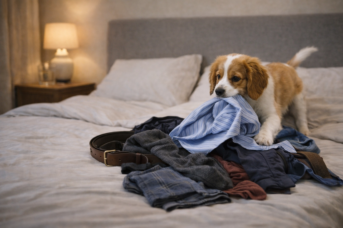 Щенки, конечно, не читают книжки по психологии. Они не знают слов «зависимые отношения», «непереработанная утрата», «страх одиночества». Зато у них есть прекрасная, безжалостная функция: они приносит к нашей подушке всё, что мы так старательно распихали по углам. Носки, рубашки, ремни, старые обиды, недоговорённости — всё в одну кучу.